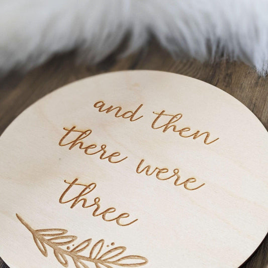 Personalised 'And then there were...three' baby announcement Disc - 9cm/14.5cm