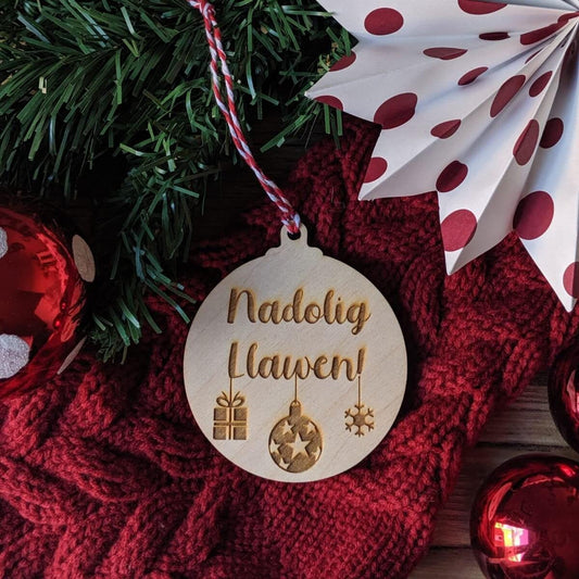 Nadolig Llawen - Wooden Christmas decoration, Christmas Bauble