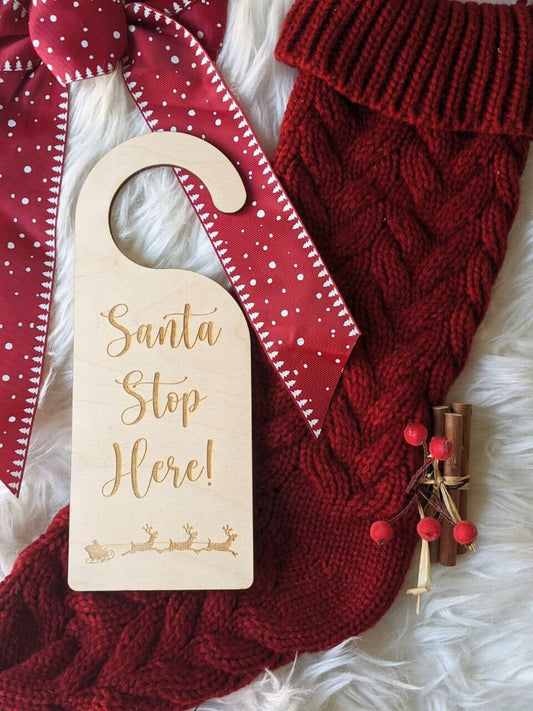 Santa Stop Here Door Hanger - Christmas Door Hanger - Christmas Door Sign
