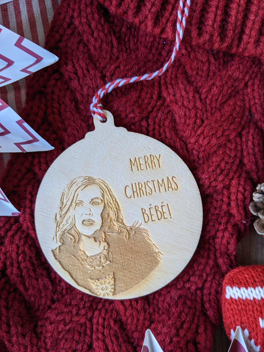 Schitts Creek Christmas Bauble - Merry Christmas Bebe Christmas Decoration - Wooden Engraved Christmas Ornament or Christmas Gift Tag