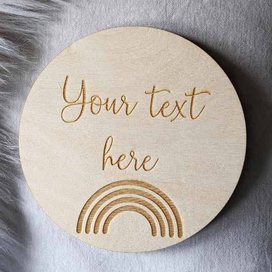 Personalised Wooden Disc Engraving with Rainbow motif - Custom Made Gift