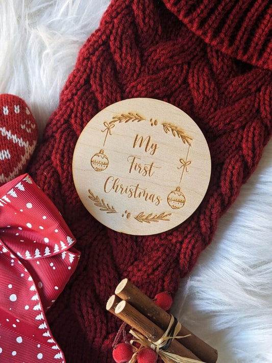 My 1st Christmas Flat Lay Disc - Christmas photo prop - Wooden Engraving -Flat Lay disc- Wooden Disc