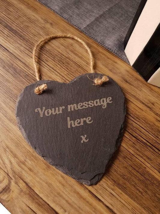 Personalised Laser Engraved Heart Shaped Slate Sign - Custom Slate Engraving