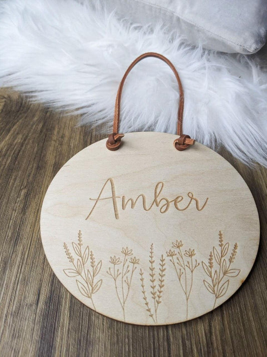 Personalised Name Wall Hanging - Nursery Plaque - Keepsake wooden wildflower sign