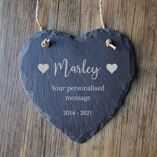 Pet Memorial Slate - Personalised Engraved Heart Shaped Memorial Slate Sign
