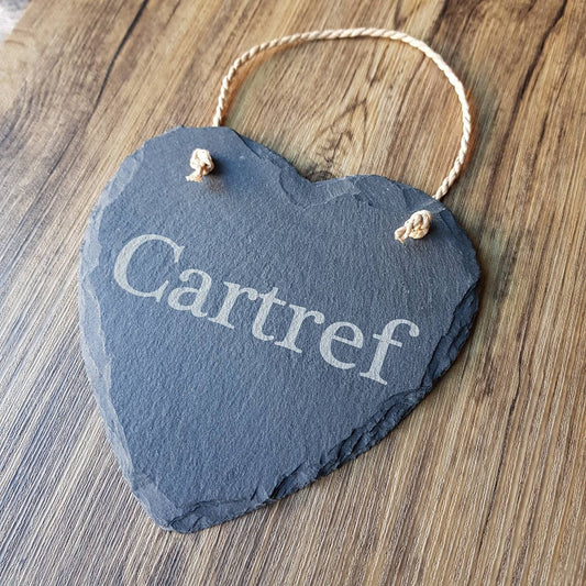 Welsh Slate Sign - Cartref Engraved Heart Shaped Slate Sign