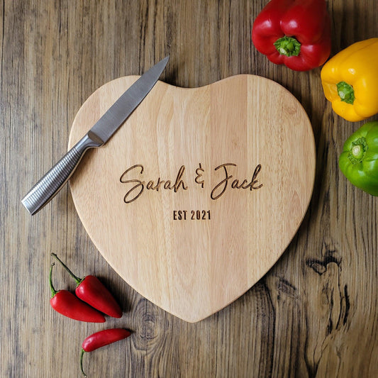 Personalised Engraved Heart Shaped Chopping Board - Personalised Wooden Cheese Board - Family Kitchen Gift
